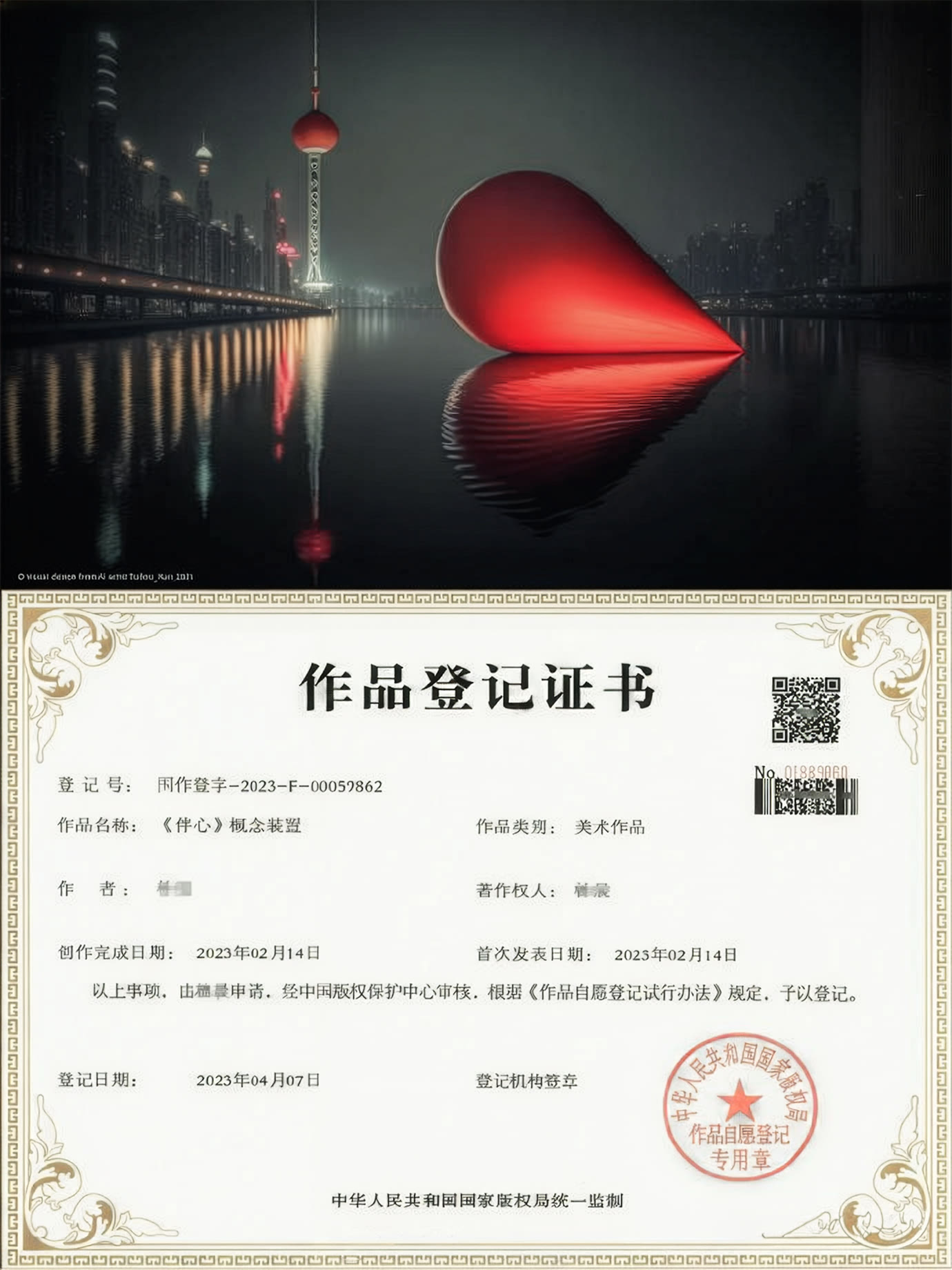 原告は、AIGC(AI生成コンテンツ)を使って活動するデザイナーでした。彼が制作したのは、夜景の中に浮かぶ、半分だけのハート型オブジェを描いた一枚の画像です。タイトルは 「伴心(日本語訳:心に寄り添う)」。