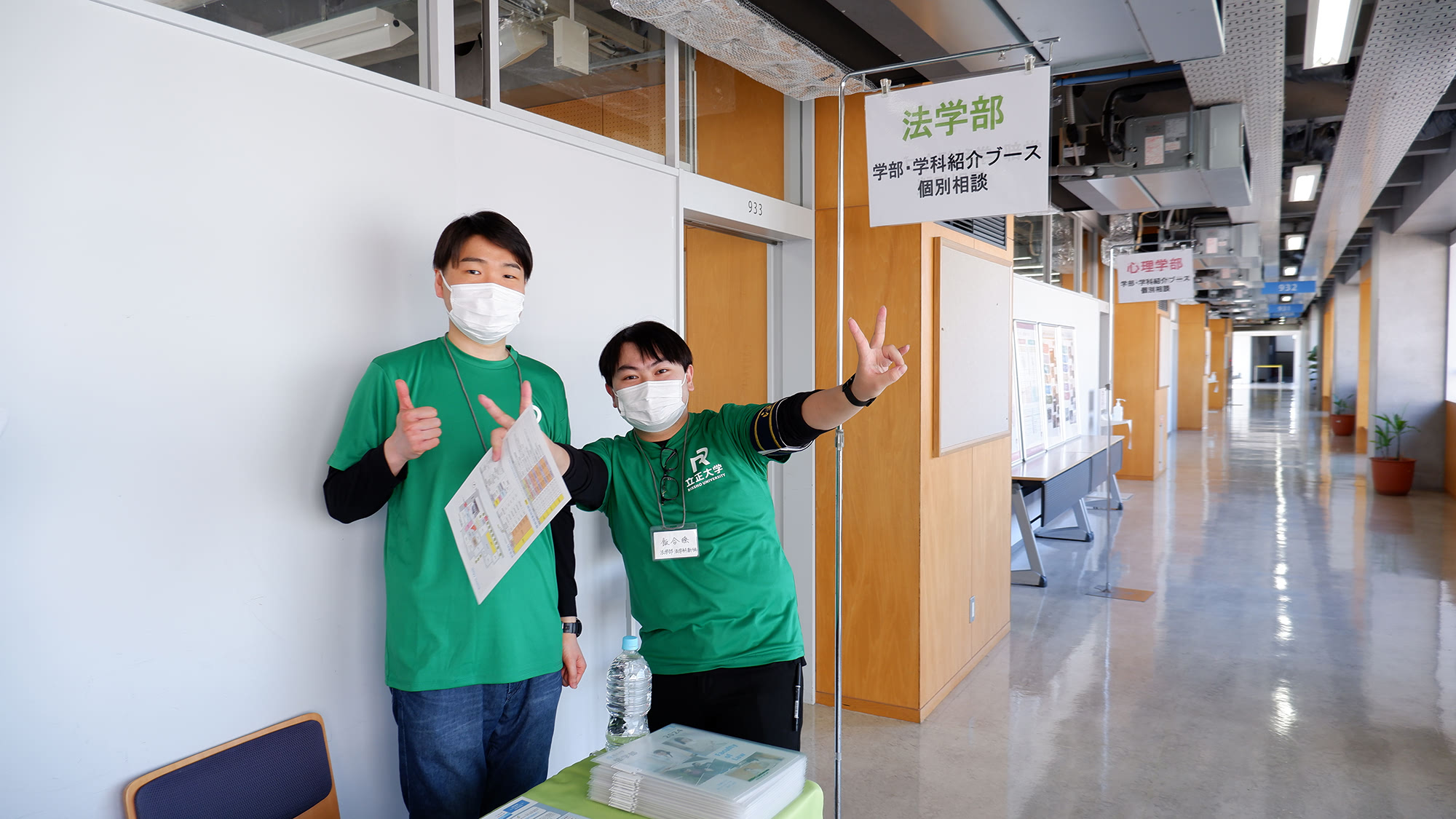 オープンキャンパス(202303) 昨年に続き、今年3月19日のオープンキャンパスも、ゼミ生たちと一緒に参加しました。 法学部のことを高校生及び保護者たちに色々とと紹介することができました! 次のオープンキャンパスも楽しみにしております。 (来訪者の肖像権を配慮するという観点から、一部の写真はイラスト風に加工されております)