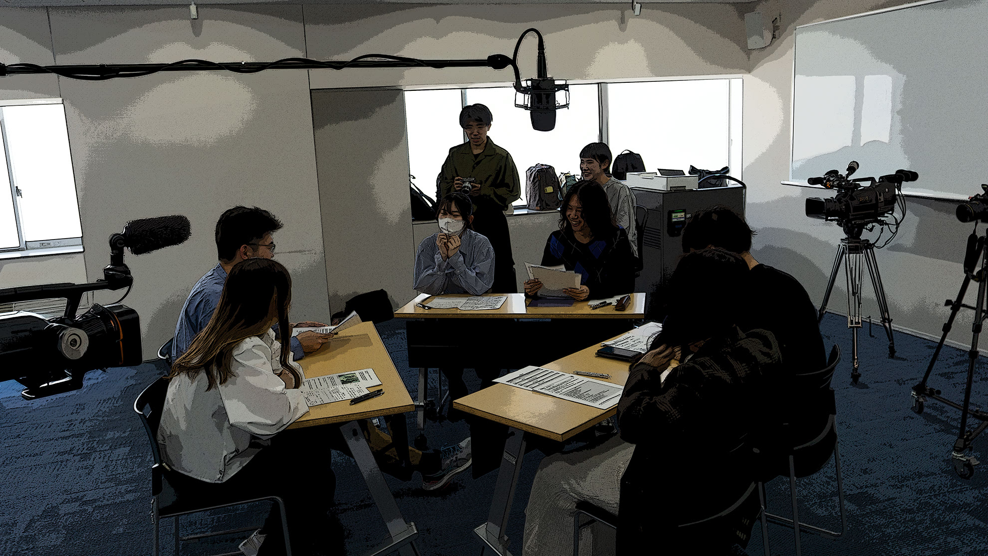 新しい入試形式を入試受験生たちに具体的にイメージしてもらうため、学部の入試業務をサポートし、ゼミ生たちと一緒にゼミナール入試の様子を実演するプロモーション動画の撮影を行いました。