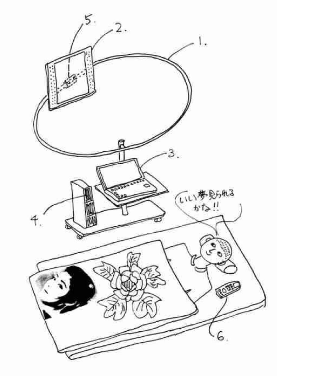 この発明の着想と目的について、出願者は次のように記しています。「私は、寝ている間も、時々の目や耳からの刺激により、見る夢が左右されることに気がついた。それであれば、いい夢を見て、楽しく過ごせる簡単な装置はないかと、考えてみた。特に最近は、お年寄りや、独身のミドルも多いので、楽しい夢を見る装置は、その人の人生をより豊かにするものと考えられる。」。