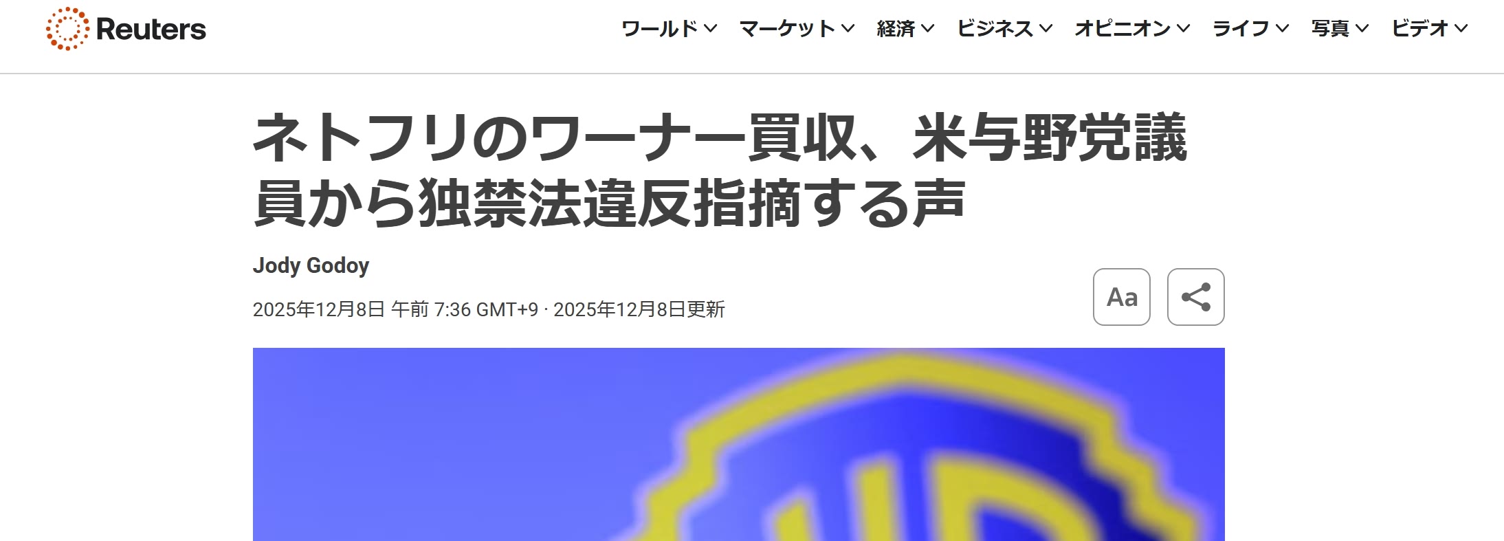 (画像はReuters電子版12月8日記事のタイトル部分)