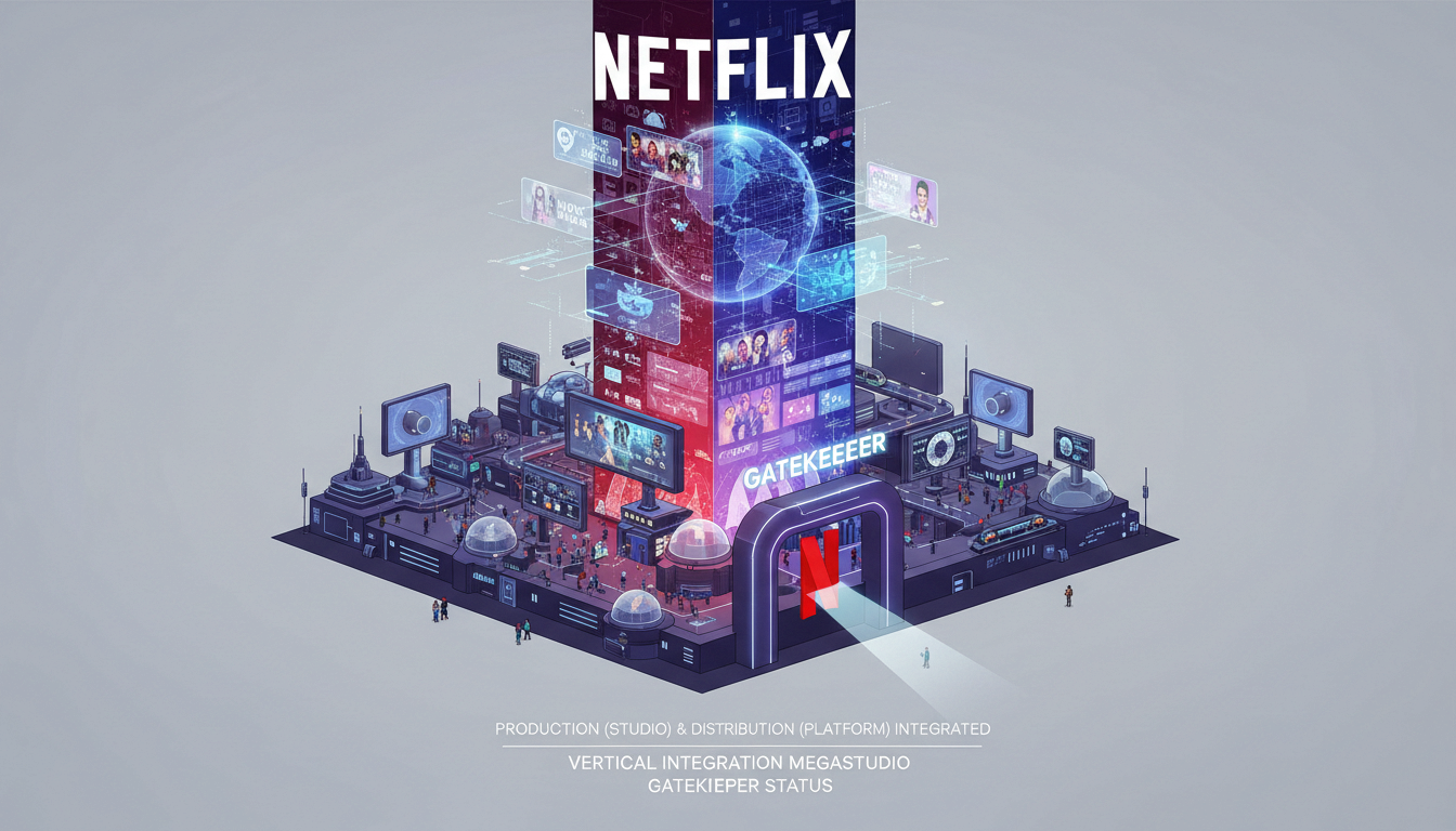 制作(スタジオ)と配信(プラットフォーム)を一体化した「垂直統合型メガスタジオ」が誕生すれば、自社コンテンツの独占配信、ライセンス制限、価格交渉力の強化など、いわゆる「ゲートキーパー」的地位を得る可能性があります。