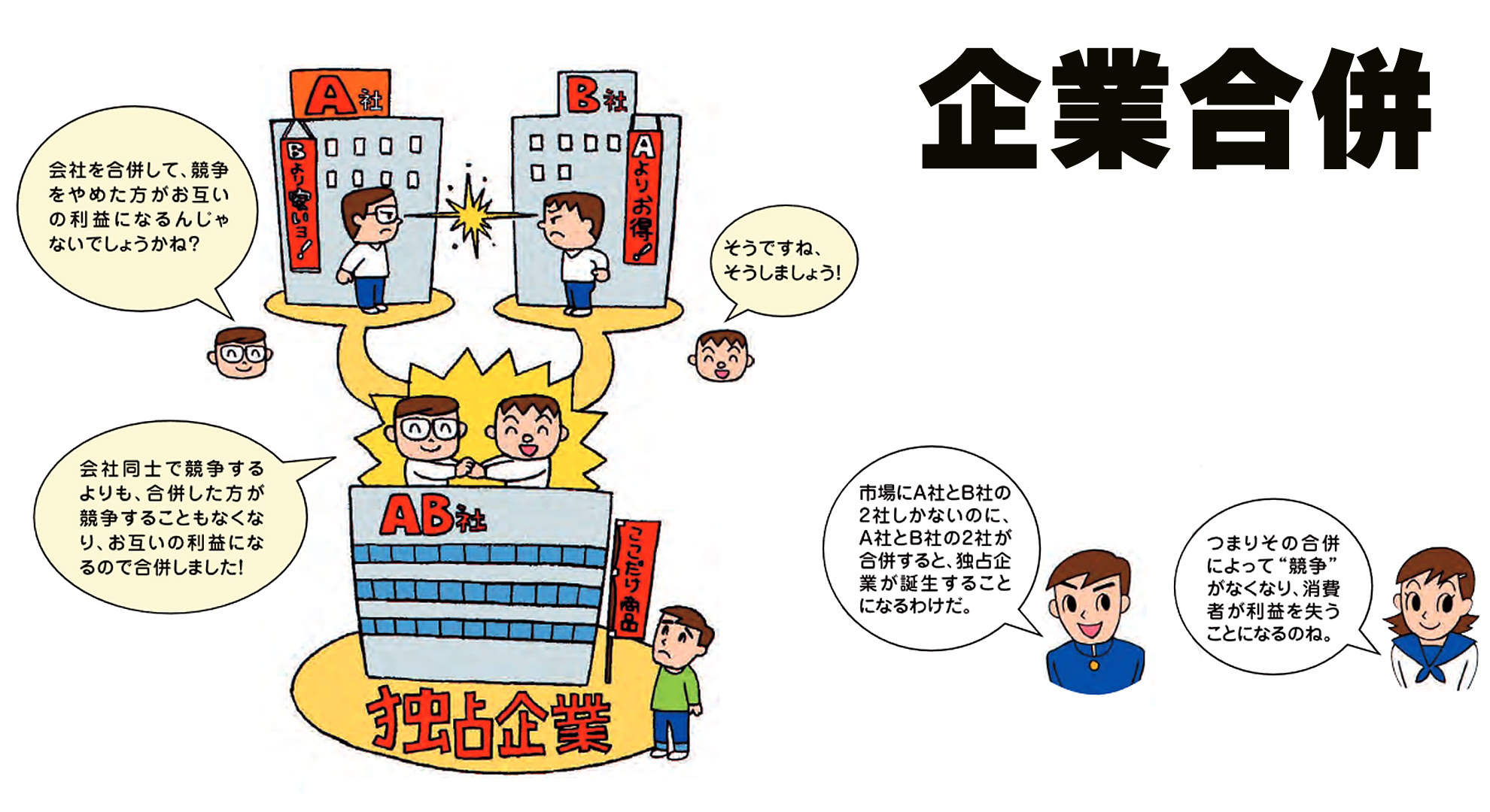 露骨な違法行為だけでなく、企業合併や企業買収のように、一見すると正常な経営行為に見える行動であっても、高度の寡占又は独占をもたらす場合も、競争法の規制を受けることになります。