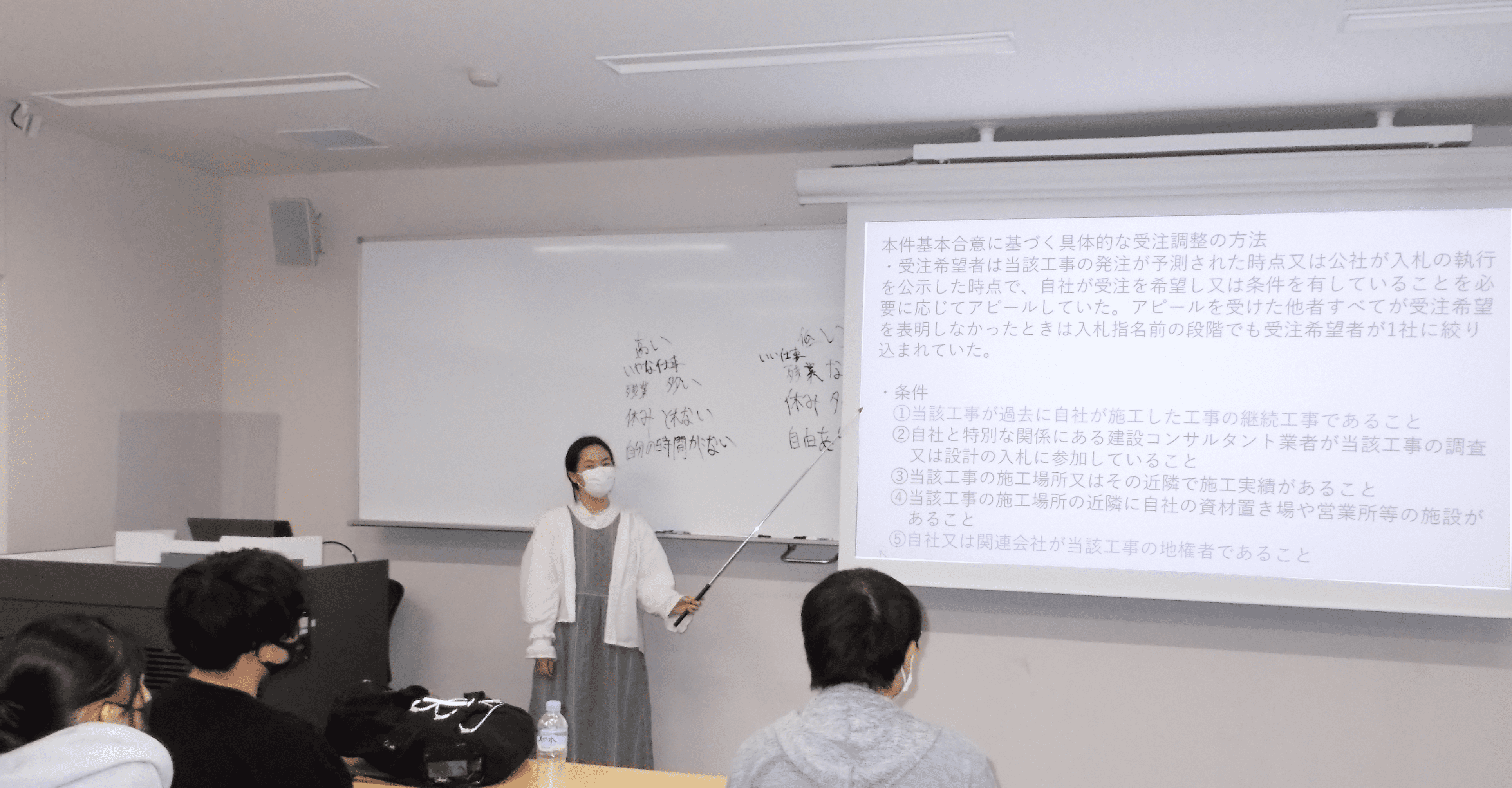 6月6日(月曜日)のゼミナールにおいて、山中さんより多摩談合事件(最判平成24年2月20日民集66巻2号796頁)の報告が行われました。