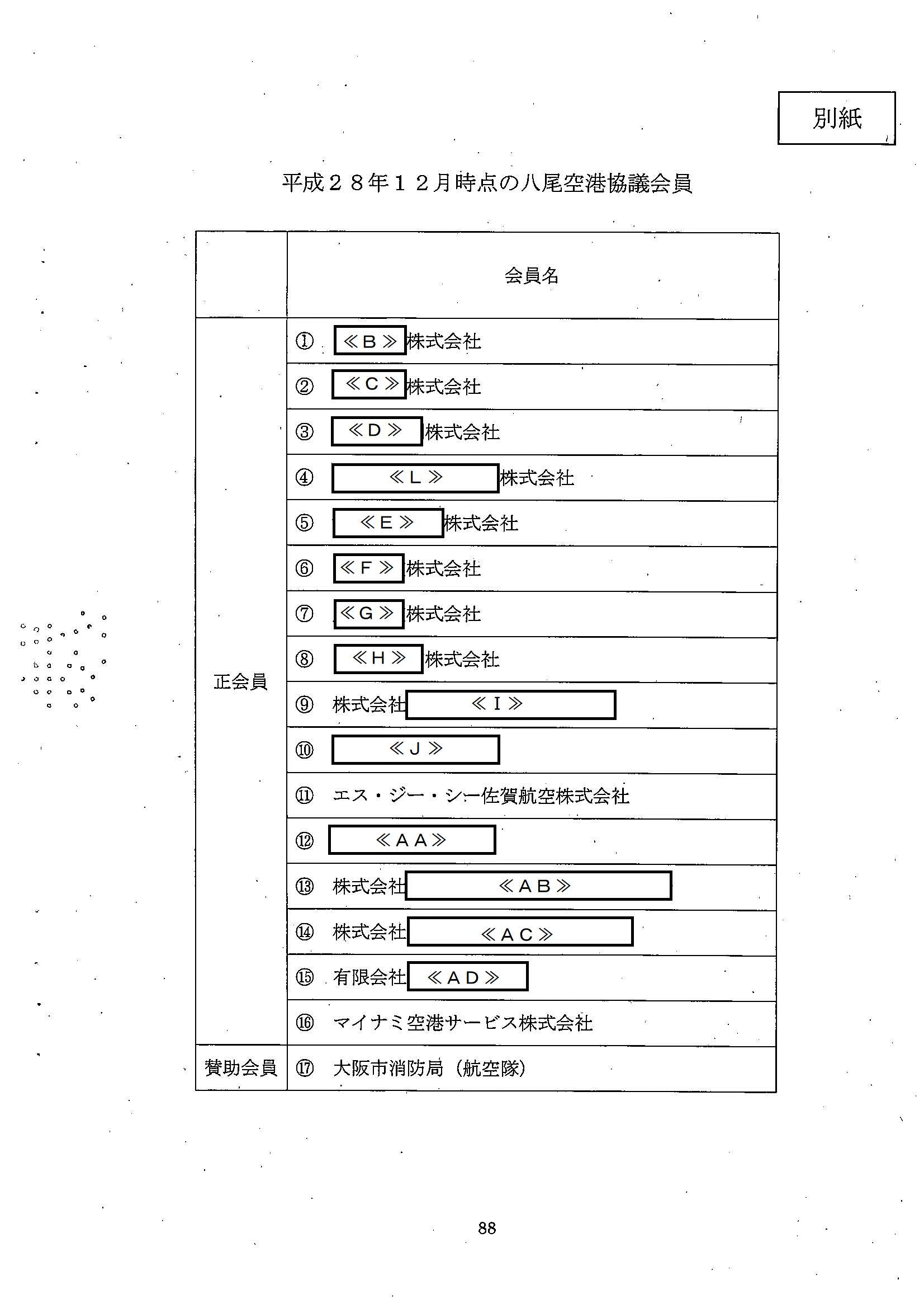 平成28年12月当時における八尾空港協議会員は別紙「平成28年12月時点の八尾空港協議会員」記載の17名(賛助会員1名を含む。)であった。その後,少なくとも令和元年10月まで,会員に変更はない。