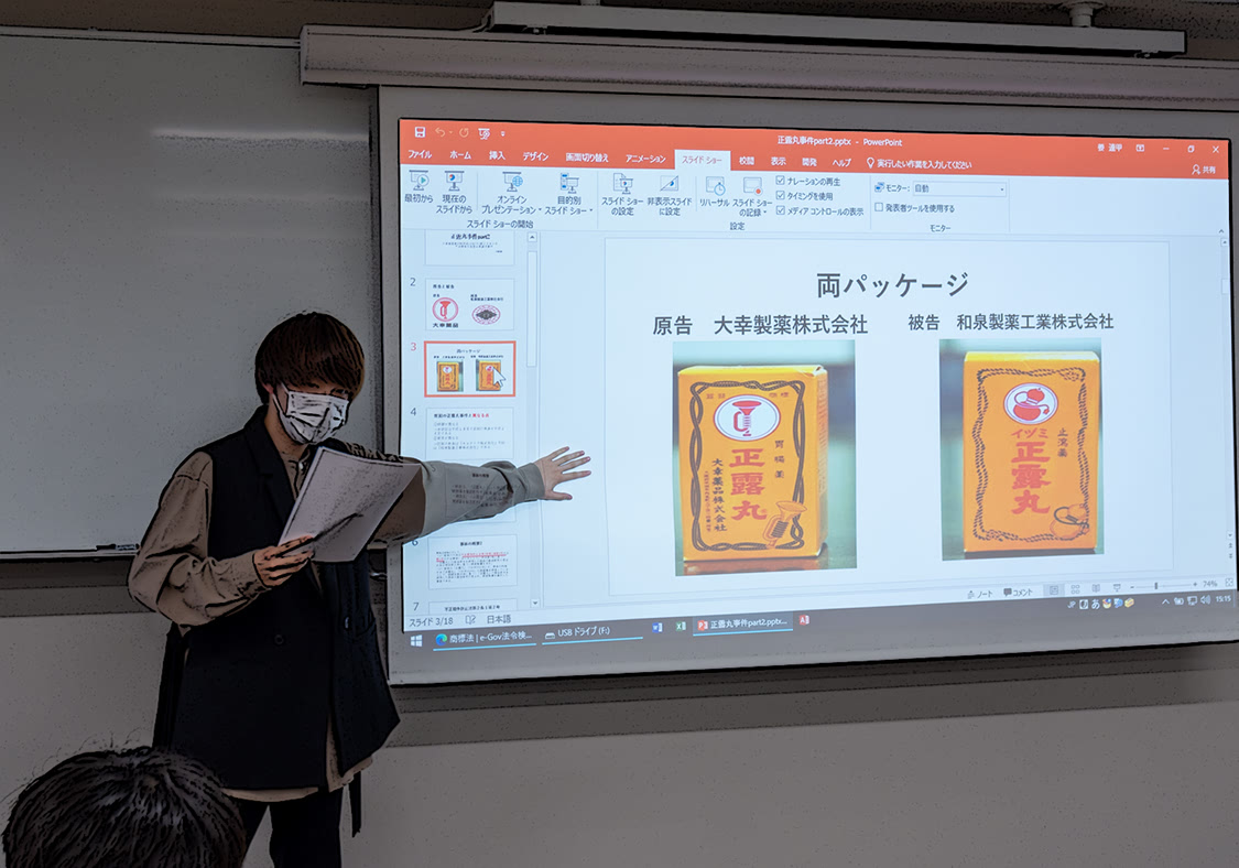 今週の審判決プレゼン〔正露丸の商標権、会社名の競争法問題を巡る話〕 6月2日のゼミナールにおいて、①正露丸商標権の及び範囲等を巡る訴訟、②社名の混同性を巡る訴訟のプレゼンテーションと議論が行われました。 (大阪地判平成18年7月27日・大阪高裁平成19年11月11日) (最判昭和58年10月7日)