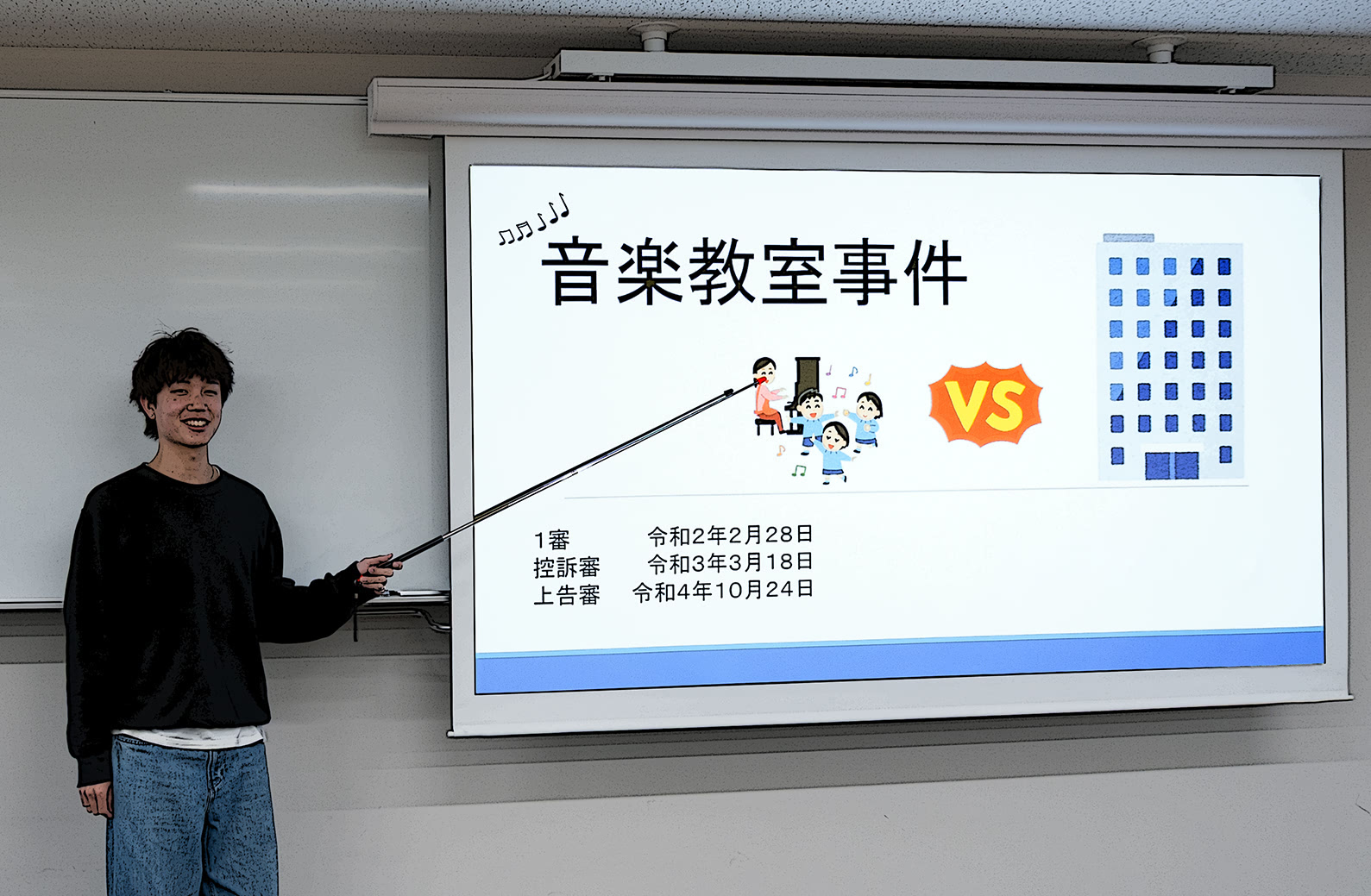 今週の審判決プレゼン〔音楽教室での楽曲演奏をめぐる著作権法訴訟〕 2025年5月9日(金)のゼミナールでは、音楽教室における楽曲利用と演奏権の許諾を巡る著作権訴訟について、プレゼンテーションと討論を行いました。 (最判2022年10月24日)